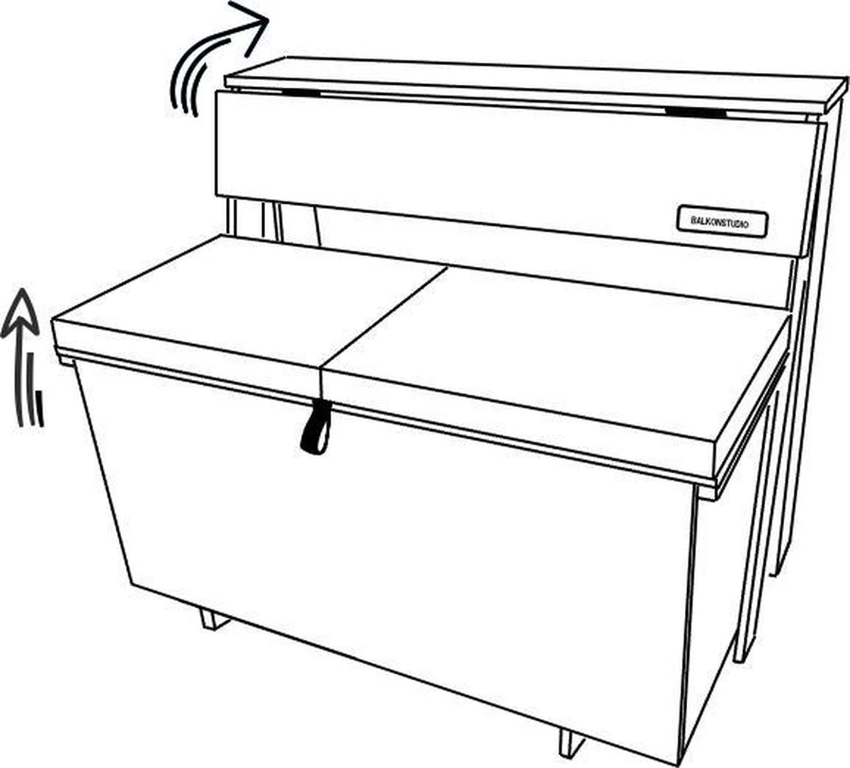 Best verkocht! 3in1 -> balkontafel, bank & opbergruimte in 1 meubel! Speciaal voor op uw balkon. In drie verschillende breedtematen beschikbaar: 85 / 95 / 105. De rugleuning is met een eenvoudige beweging uit te schuiven tot een tafel. Deze schuift u weer eenvoudig terug als rugleuning voor de bank. Onder de zitting is veel opbergruimte voor bijvoorbeeld een krat bier, stoffer en blik, potgrond etc. De bank is geschikt voor twee personen. Gemaakt van 100% gerecycled hout waar we alleen het beste hout uit selecteren. Het meubel monteert u in slechts 3 minuten zonder dat er gereedschap voor nodig is. U ontvangt de instructies voor montage bij de aanschaf.
