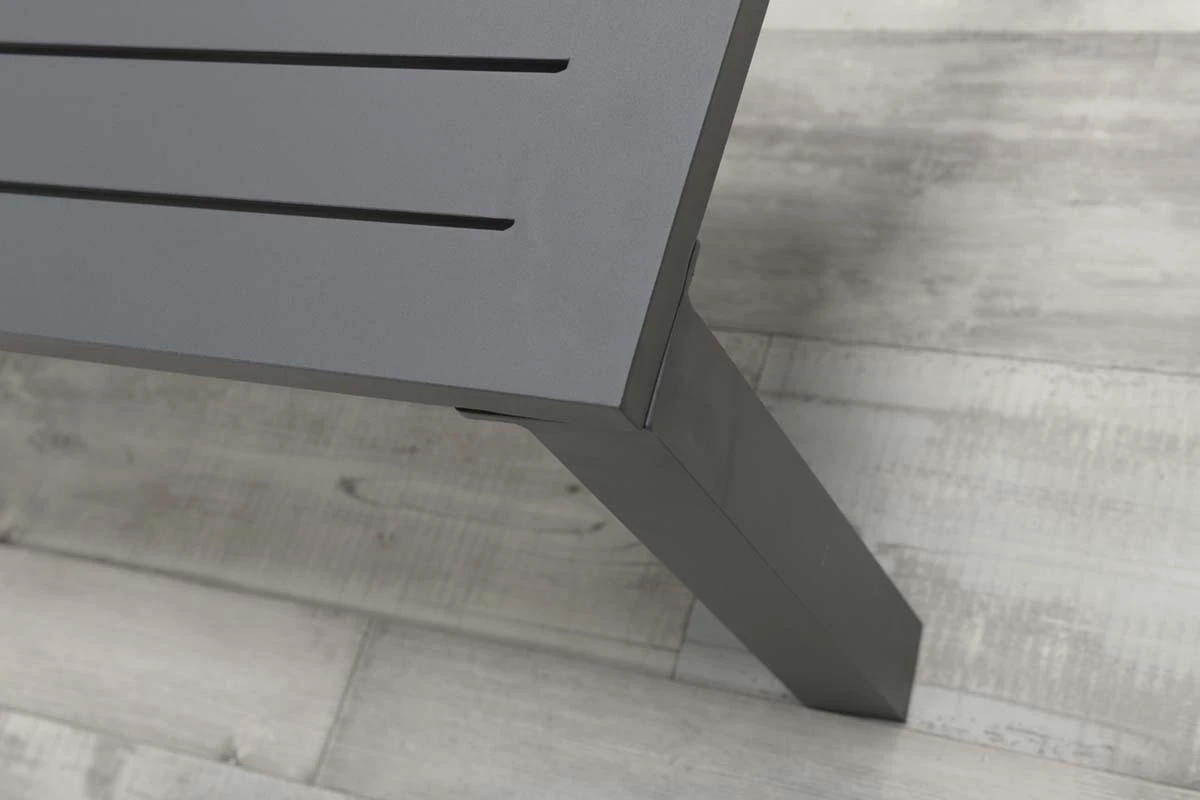 De set bestaat uit een driezitsbank met koffietafel en twee stoelen. Het frame van de set is gemaakt van aluminium met een beschermende poedercoating. Aluminium is uitermate geschikt voor gebruik buitenshuis, omdat het eenvoudig te onderhouden, gemakkelijk schoon te maken is en een moderne uitstraling heeft. De dikke loungekussens worden standaard meegeleverd en hebben een waterafstotende coating. Water van een korte regenbui kun je eenvoudig van het kussen af kloppen. Mocht je de kussens een niet gebruiken, dan raden wij aan deze schoon en droog op te bergen.