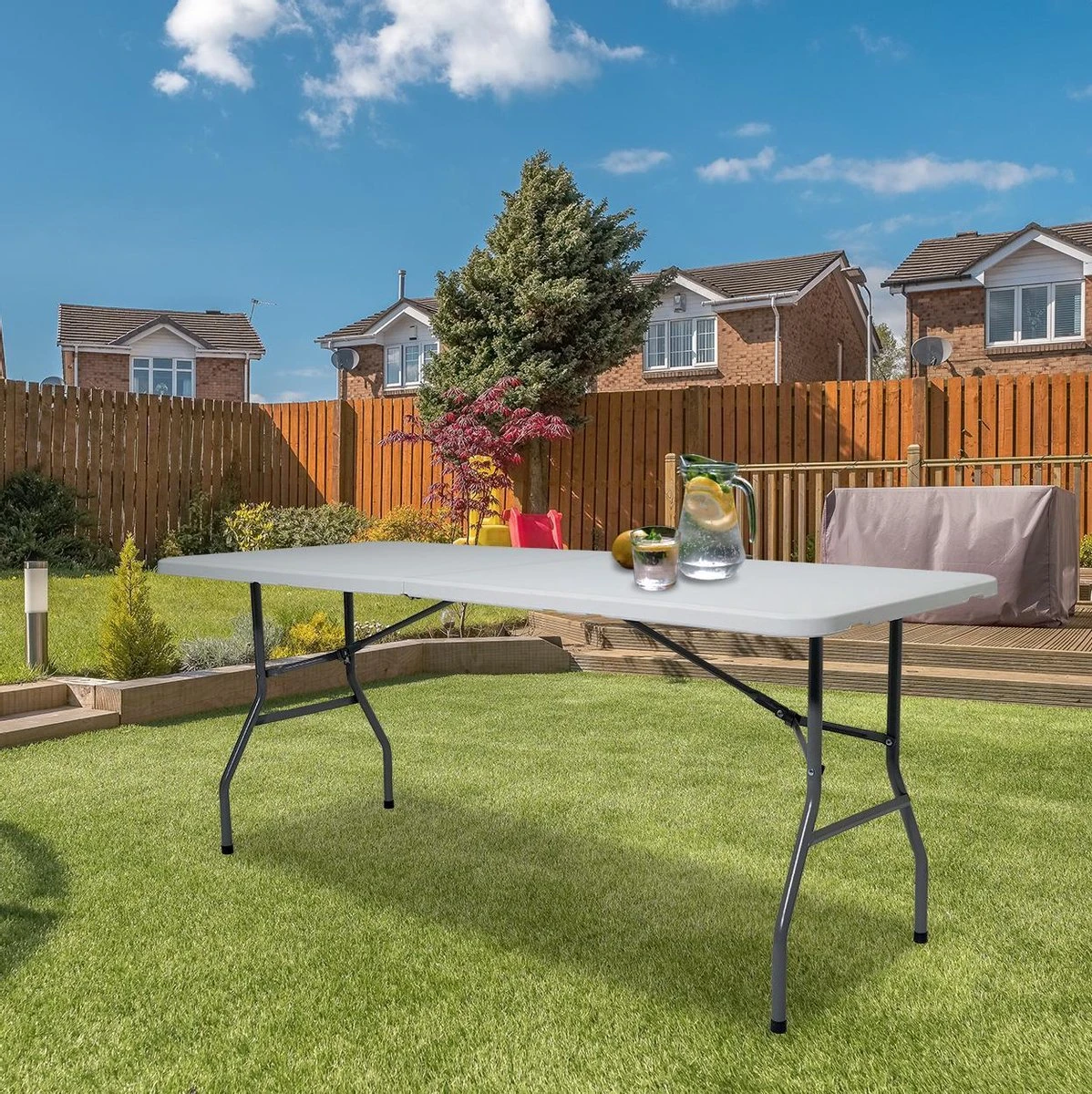 Ga je met het hele gezin barbecueรซn in de tuin? Of is er iemand jarig? Dan is de klaptafel van LifeGoods de perfecte oplossing! Het tafelblad heeft een afmeting van 180 bij 70 cm waardoor er meer dan genoeg ruimte is voor 6 tot 8 personen. Doordat de klaptafel weer- en corrosiebestendig kun je de tafel zonder zorgen het hele jaar buiten gebruiken. De klaptafel heeft een stevig metalen frame en een draagkracht van wel 120 kg. Je klapt de tafel binnen een paar seconden eenvoudig uit.