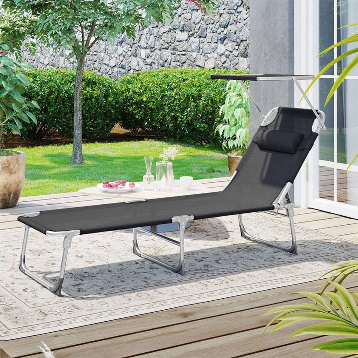 De zon schijnt sterk en het felle licht doet pijn aan je ogen? Maak je geen zorgen. Deze ligstoel heeft een zonneklep die eenvoudig kan worden aangepast. Maak een selfie en laat anderen jaloers worden!