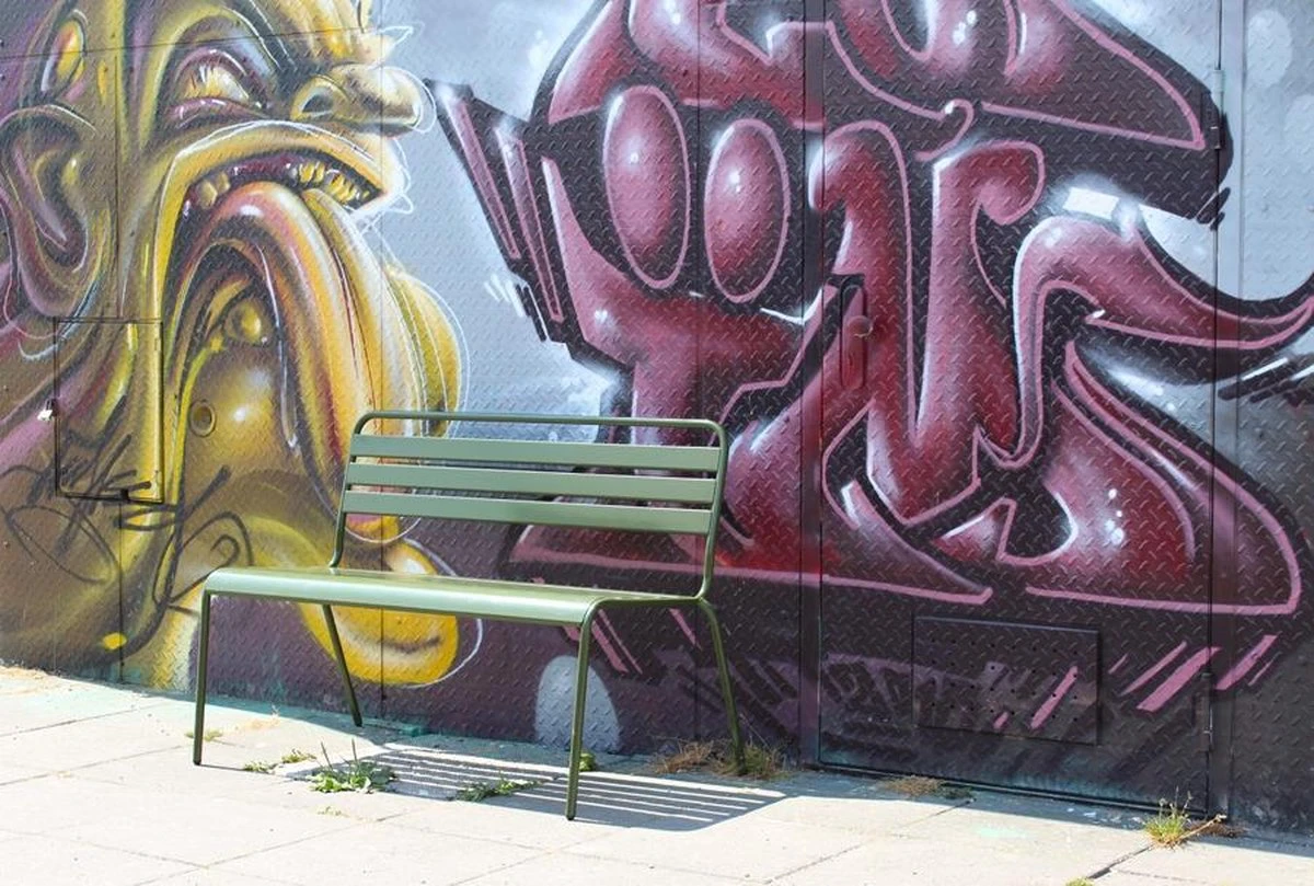 MaximaVida metalen tuinbank Max is naast olijfgroen verkrijgbaar in 6 kleuren.