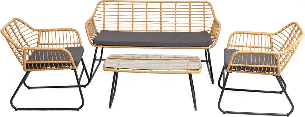 | Verpakkingsinhoud | 1 zitbank, 2 fauteuils, 1 tafel |