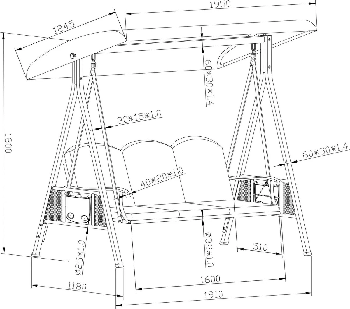 Royale drie zits schommelbank met een stabiele constructie gemaakt van staal, afgewerkt met een hoogwaardige bronskleurige poedercoating. De combinatie van de comfortabele kussens, waaronder รฉรฉn hoofdkussen, handige plateauโs waar u uw drinken of eten op kunt zetten en zonnescherm zullen zorgen voor een perfect rust moment.